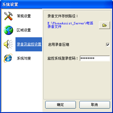 在录音及监控设置界面可以设置监控系统运行时的登录验证密码。