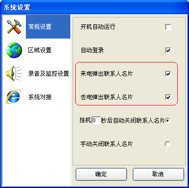 选中“去电弹出联系人名片”则去电时将弹出去电号码对应的联系人名片。