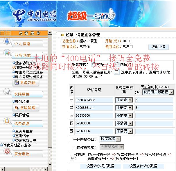 免费赠送的可选超级一号通号码,(末尾aabb\abab\abc\aa\aaa\aaab等格式要求同时开通多部无线座机,更多号码联系我们)